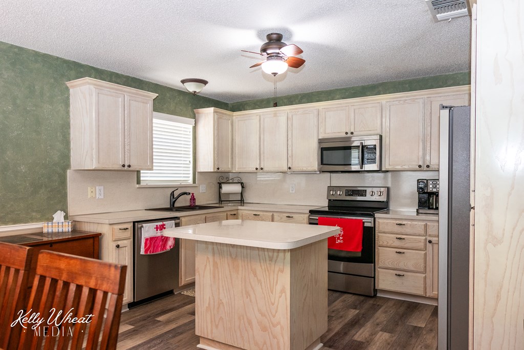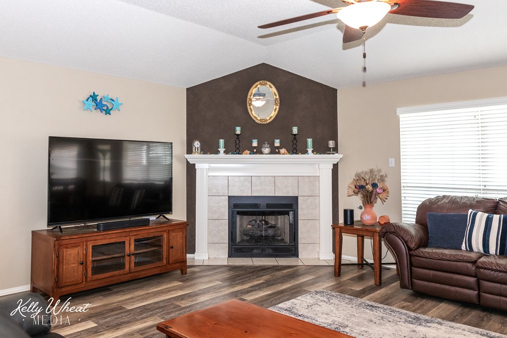 This 3 bedroom /2 bath w/ split bedrooms and fireplace will be one your buyers WILL LOVE!!! Meticulously neat and clean - this one is sure to please! Lots of beautiful natural light, neutral colors and easy maintenance flooring! Tons of recent updates: roof 2024, HVAC 2 yrs, fence 6 months, water heater 1.5 yr, flooring updated, both showers remodeled! This is a SUPER nice home w/ an extra large primary bedroom, big arched window and his/her vanity area with walk in closet! Island kitchen w/ brand new oven/stove and a designated dining area. This home is perfect for entertaining friends and family for everyday fun and also on holidays! The outdoor living area is stunning with a wonderful, covered patio, a large concrete area that's perfect for games, ping pong table or riding toys for kids! There is also a great storage building and privacy fence...this is a PERFECT home for a young family or a couple that wants a terrific home with a very low maintenance yard!